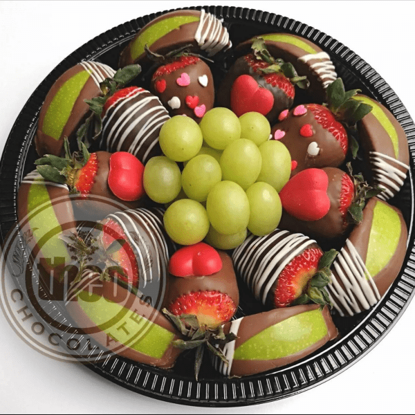 Plato de frutas con chocolate surtido