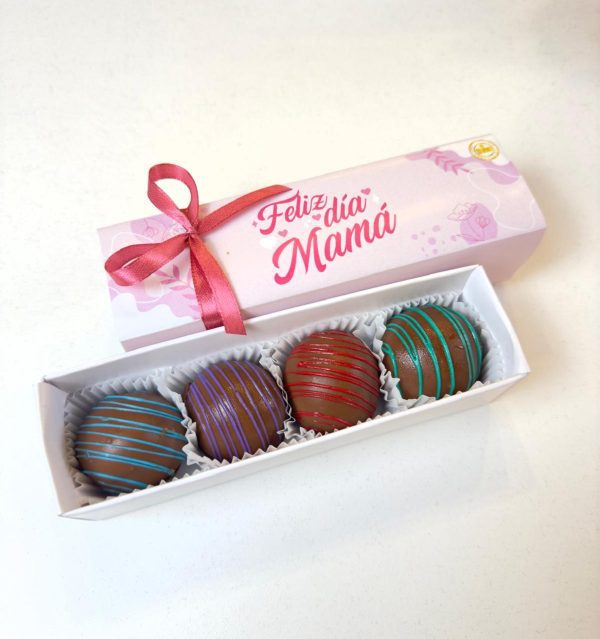 Caja con 4 bombones de diferentes sabores. La caja la puedes personalizar con el logo de la empresa.