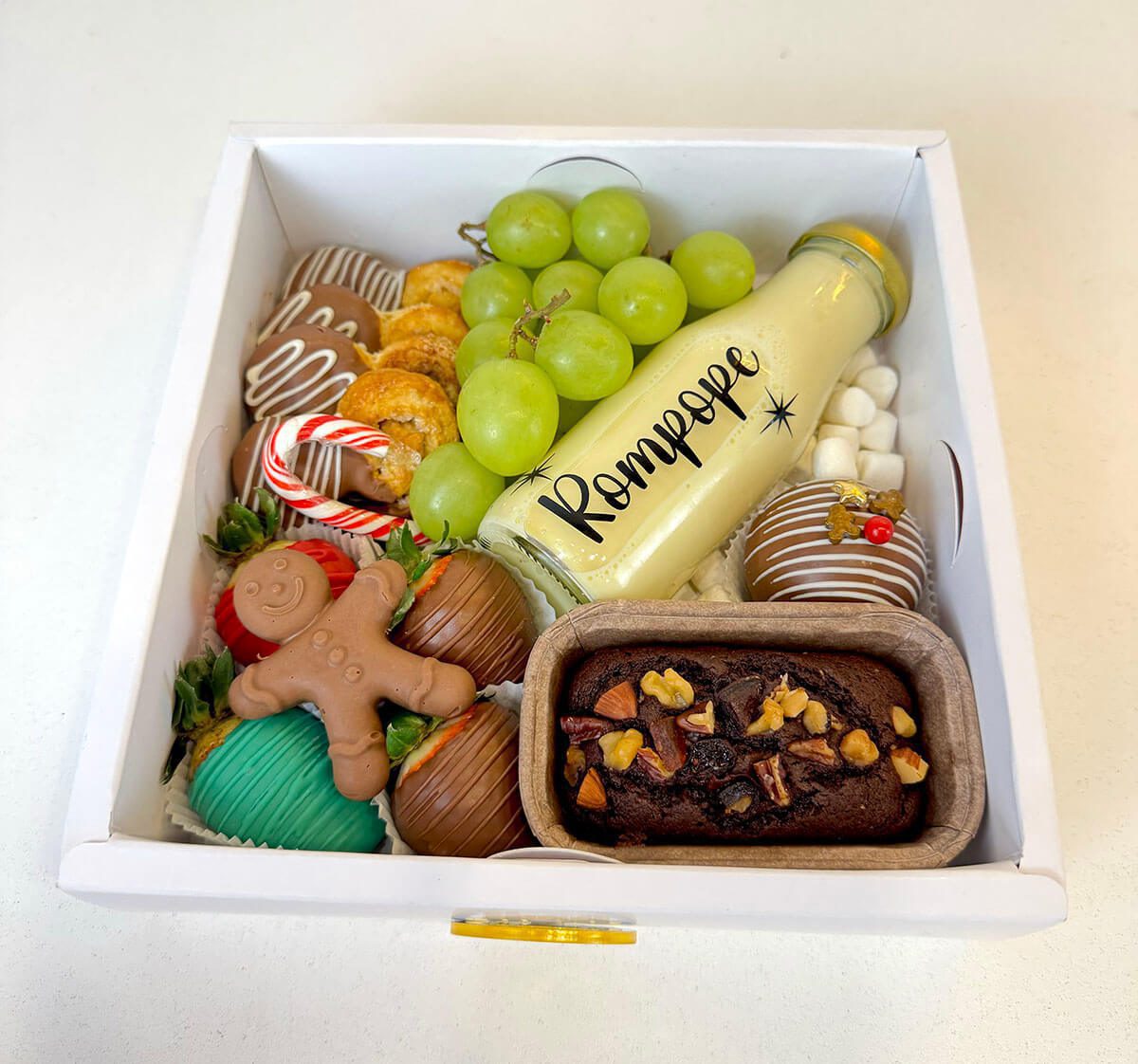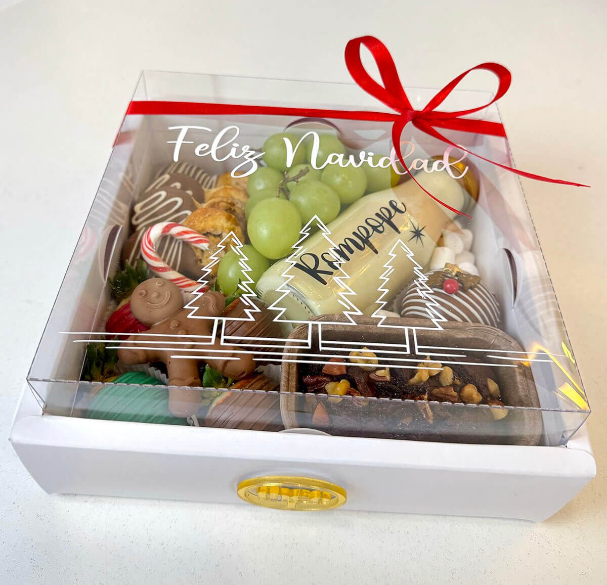 - Caja de cartón con tapa transparente personalizada con diseño navideño