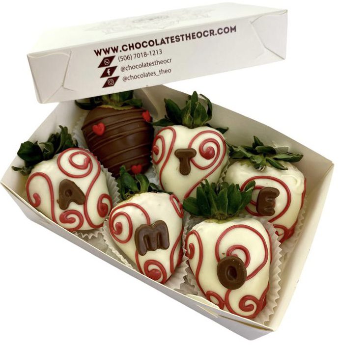 Caja con 6 fresas con chocolate blanco y “Te Amo” cantidad