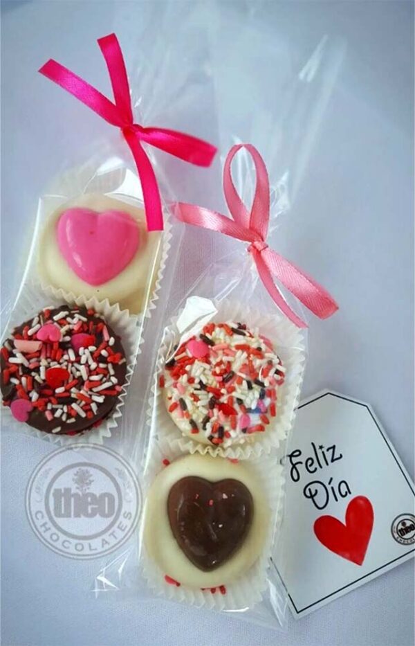 Galletas Oreo recubiertas con chocolate blanco y chocolate de leche , decoradas con Sprinkles y chocolates de corazón, paquete x 2 empacado y decorado con colilla personalizada*