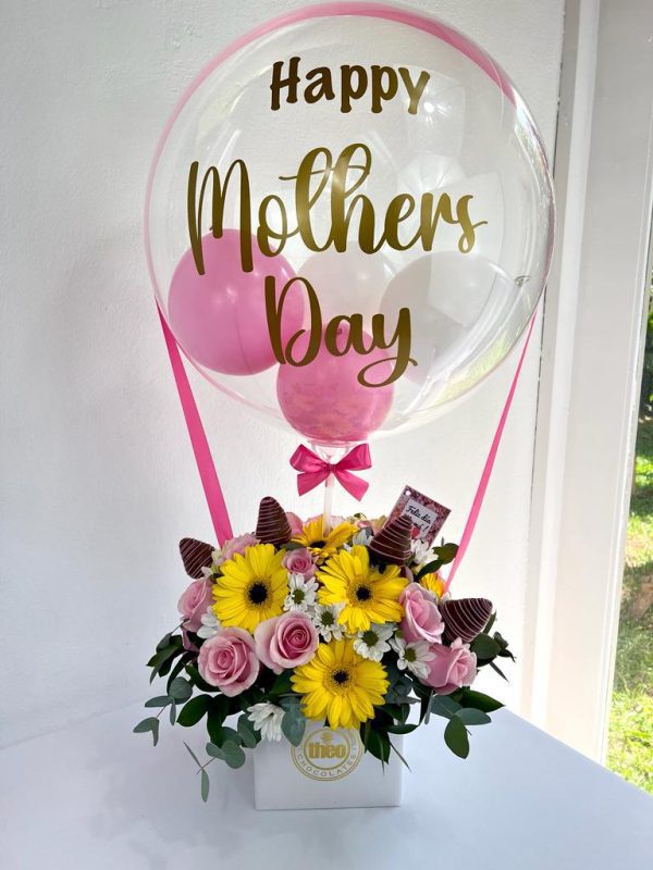 Arreglo rosas rosadas, gerberas y globo “Happy Mothers Day”