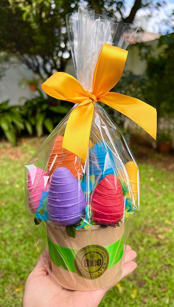 Contiene 9 fresas cubiertas con chocolate de colores.