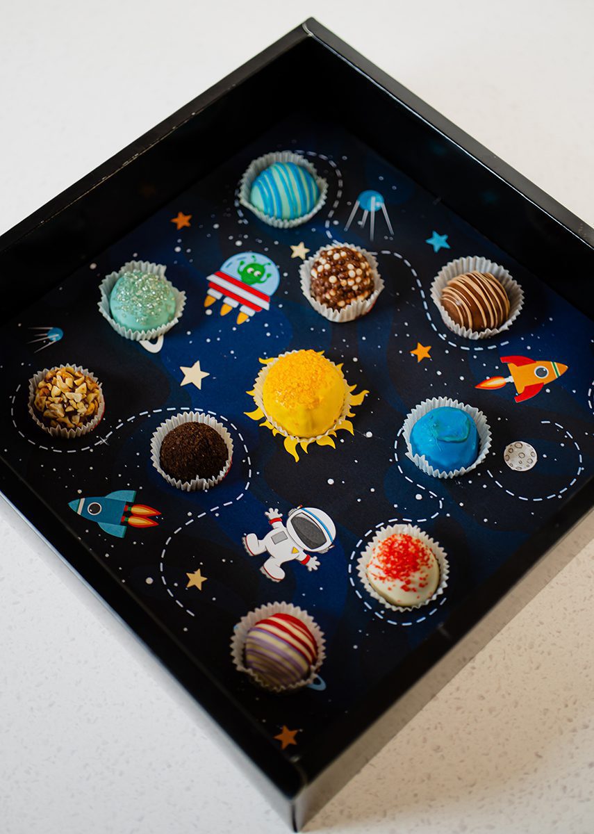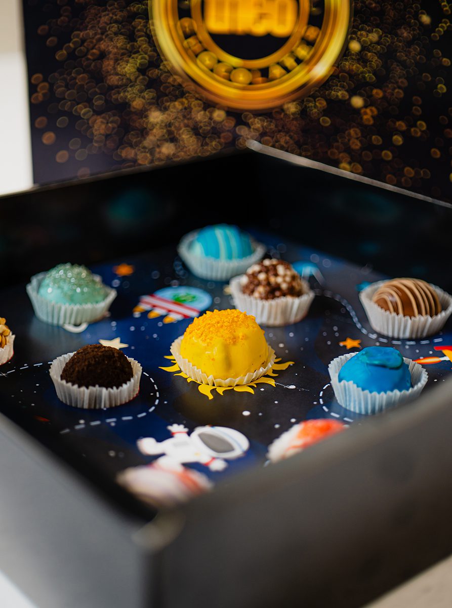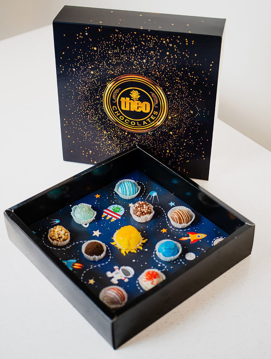 Caja de trufas de chocolate hechas con