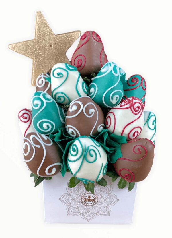 Se ve muy delicado, con fresas Premium decorado con chocolate y una estrella que le da el toque final.