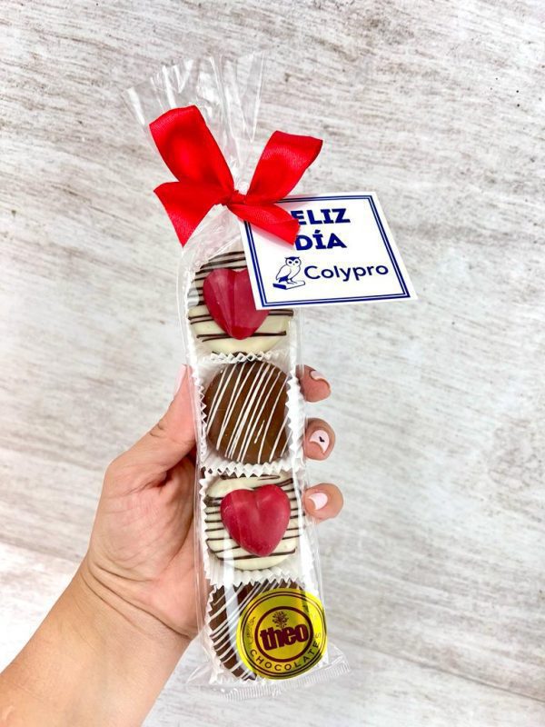 Galletas Oreo recubiertas con chocolate blanco y chocolate de leche , decoradas con chocolates de corazón, paquete x 4.